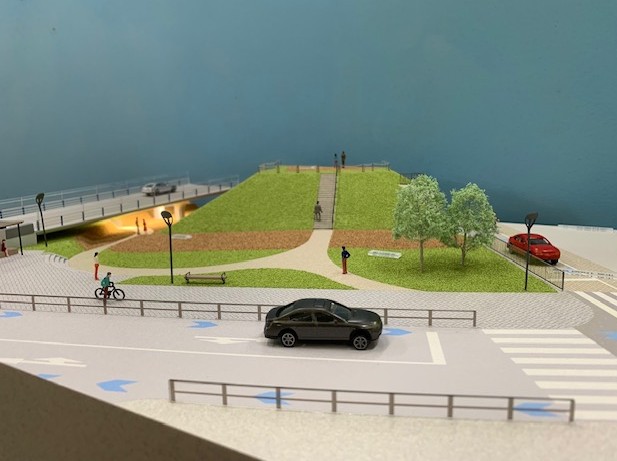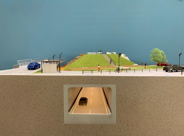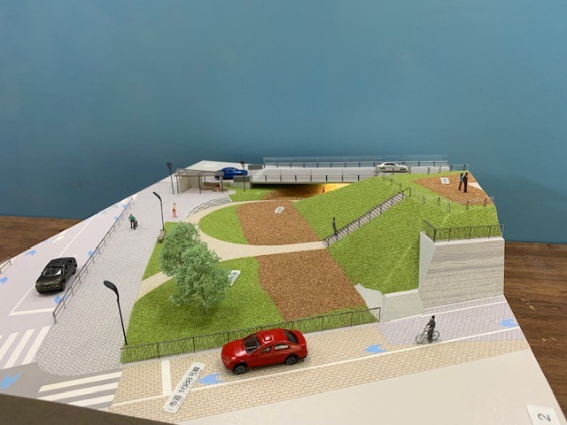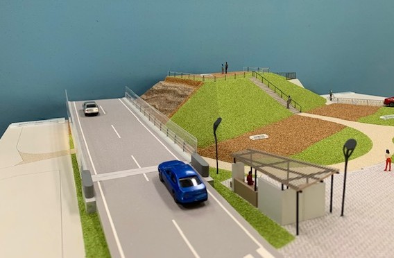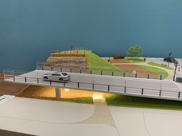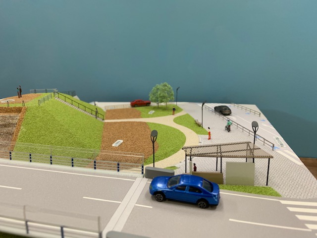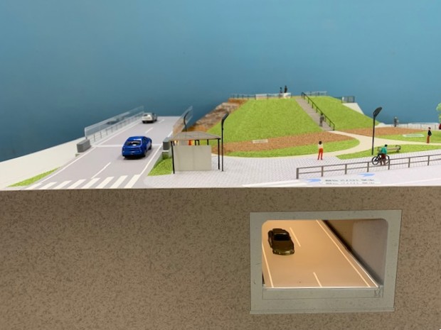 道路計画の模型です。新しい道路建設に伴い計画を具現化した事例です。