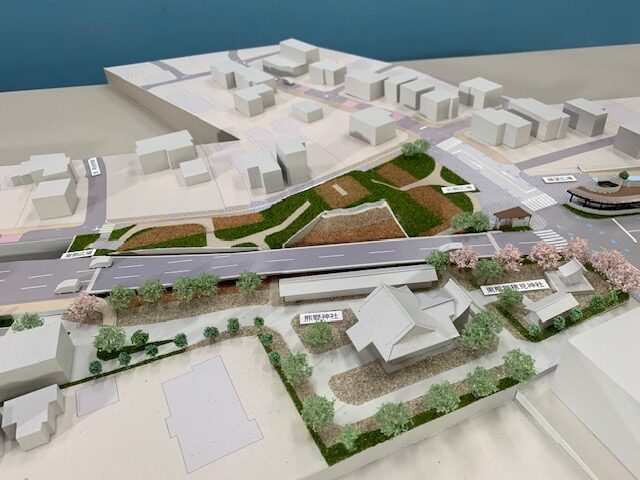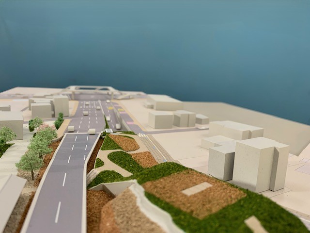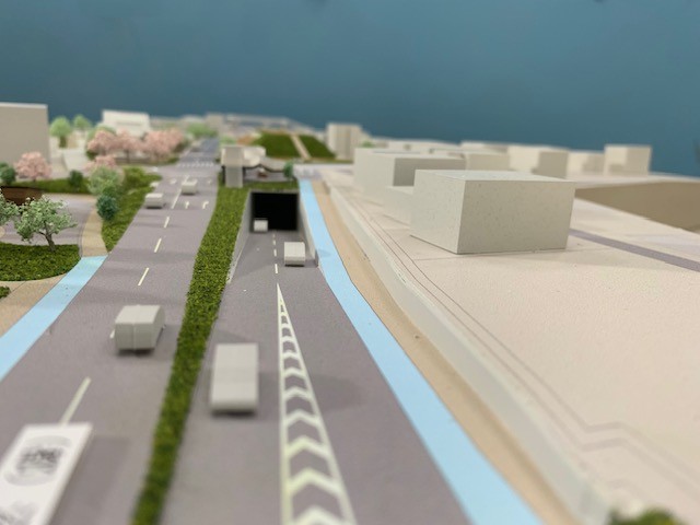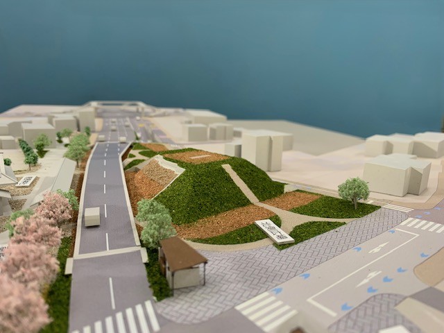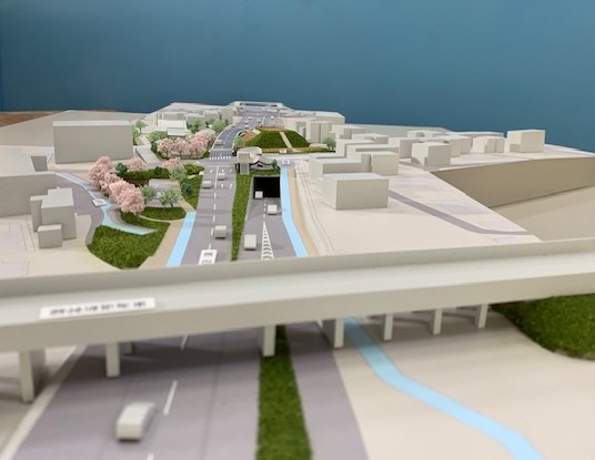 道路計画の模型です。新しい道路建設に伴い計画を具現化した事例です。